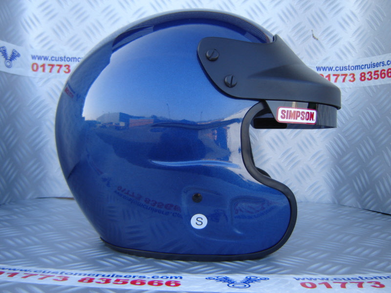 Simpson LX Cruiser Helmet FR For Race drivers wanting great protection while still enjoying the wind in their face, the new Cruiser is light and comfortable. great classic Nascar Rally styling from Simpson USA I have worn a Cruiser for over 9 years on my Motorcycle and found the peak to be a godsend -just dip your head a bit when the sun comes down low or if raining too!! These are not UK road legal- warning but you cannot get a more protective helmet in open face style !!