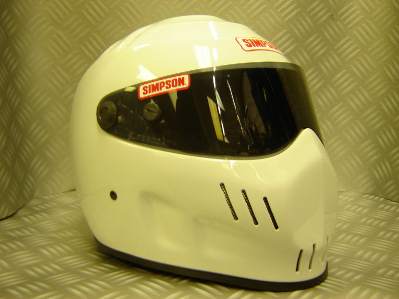 Simpson  RX Speedway Simpson helmets meanest looking lid has the smallest of all the eye ports in the Simpson range.  Possible most recognizable as their Drag Racing helmet, specifically designed to give maximum protection from exploding engines ! great for ALL racers it has become one of the most popular motorcycle Street Fighter helmets in the UK gives a real stealth look to you .