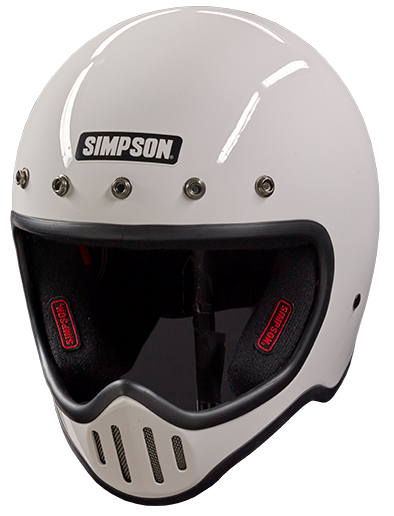 The M50 Moto from the 70's is reborn in a sleek helmet with a nod to vintage, backed by over 50 years of Simpson technology. DOT Rated. The M50 features a five snap visor. See photo.